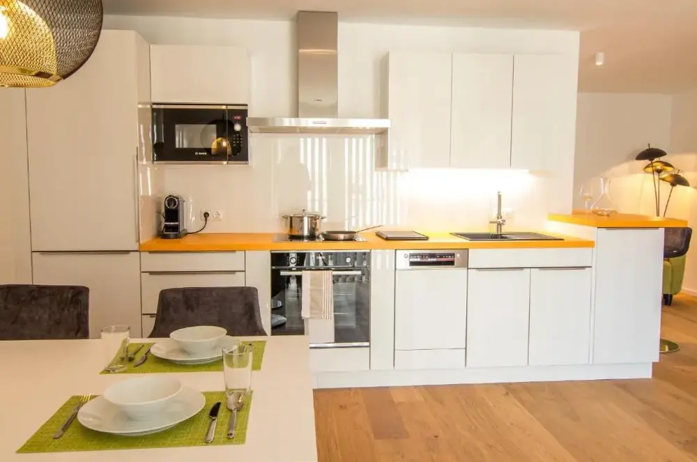 Tolle Lage (1 Minute zum Schwimmen, Lebensmittel, Restaurants, Kinderspielplatz), sehr freundliche und fürsorglicher Gastgeber, neue Wohnungen in ausgezeichnetem Zustand. Als Familie schätzten wir das Tischtennis im Haus, die Möglichkeit, Elektrofahrräder kostenlos auszuleihen, und es gibt auch einen großartigen Eisplatz direkt vor dem Haus.